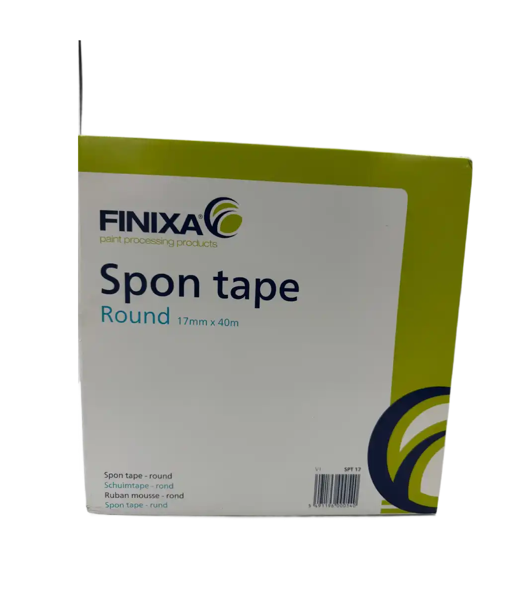 Finixa Spon Tape Round 17mm x 40m (SKU: SPT 17) is a professional-grade, round-shaped foam masking strip used to protect door jambs, hood gaps, and trunk seals during the painting process.